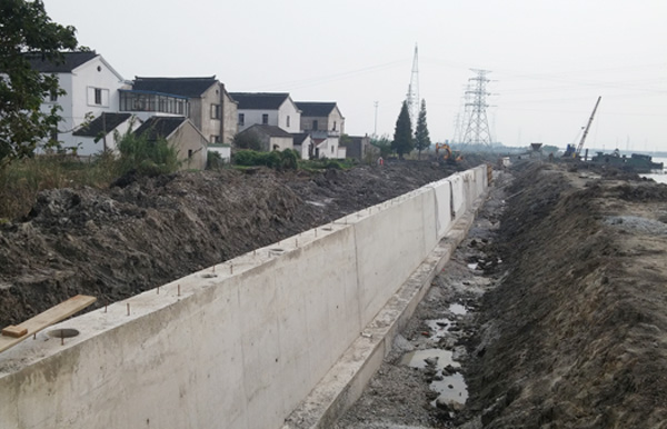 护岸工程采用重力式挡土墙结构(A1型、A2型、B1型、B2型、B3型)、钢板桩结构、木桩结构。